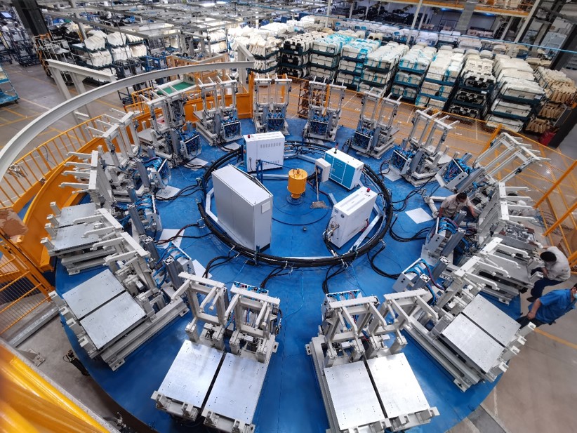 全自動環形發泡生產線是專門為大規模汽車坐墊發泡而設計的,該生產線為地面環形結構,最多可設60工位,生產節拍自動調節,系統采用機器人自動澆注,能實現雙硬度汽車坐墊和靠墊的混線生產,具有自動化程度高、性能安全可靠、適合大批量生產等特點。